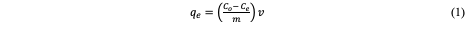 The effect of concentration, temperature, time, pH, and the dose of adsorbent on theadsorption process was investigated. To determine the quantity adsorbed (qe in mg/g) at equilibrium, equation 1 was utilized: