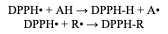 The antioxidant activity of extract samples was assessed on the basis of radical scavenging effect of the stable DPPH (1,1- diphenyl-2-picrylhydrazyl) free radical. The DPPH• test is based on the ability of the stable 2,2-diphenyl-1-picrylhydrazyl free radical to react with hydrogen donors. The DPPH• radical displays an intense UV-VIS absorption spectrum. In this test, a solution of radical is decolourized after reduction with an antioxidant (AH) or a radical (R•) in accordance with the following scheme: