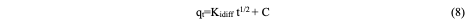 The intraparticle diffusion model is often represented by a plot of the amount of adsorbate adsorbed (Qt) against the square root of time (t1/2) using the equation (8) below: